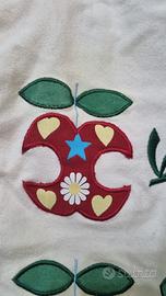 🛵 Borsa Tote Vespa Originale – Edizione speciale con ricami “Mele” 🍎 100% cotone 🛵 Bellissima shopper bag Vespa in tela pesante color crema/avorio, charme vintage anni ’70-’80! 🍎 Ricamo grande centrale con mela rossa morsicata con cuori gialli, stella blu, fiorellino e logo Vespa in verde script Sotto due mele più piccole (una azzurra, una bianca) con cuori, stelle e fiorellini colorati 🌟 Manici lunghi e resistenti Capiente (porta tutto: spesa, libri,etc...) piccolo scomparto interno. Tessuto robusto, cuciture perfette 🥰 Amato dai collezionisti Vespa e perfetto sia per uso quotidiano che come regalo originale. 💎 Ottime condizioni generali con qualche alone davanti ed una piccolissima macchia sul retro. (invio ulteriori foto su richiesta) Spedizione rapida ed accurata con Tutto Subito o consegna a mano in città.
