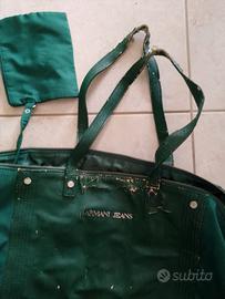 Borsa color verde vintage, molto capiente, con borsellino interno, molto danneggiata, l ecopelle si frantuma facilmente