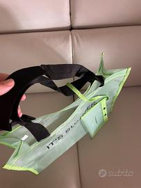 Borsa Shopping Bag Equivalenza Mare Verde Nuova mai usata. Spallacci per il trasporto, piccola pochette per effetti personali chiusura a bottone. Comoda e leggera perfette per la spiaggia