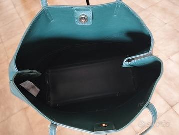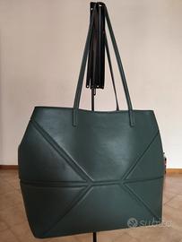 Vendo bellissima borsa a mano modello T Bag V1 (linea Carpisa), color verde pino/bosco. La borsa è realizzata in materiale sintetico liscio con un elegante effetto semilucido e caratterizzata dal tipico motivo a cuciture geometriche frontali che richiama il carapace.