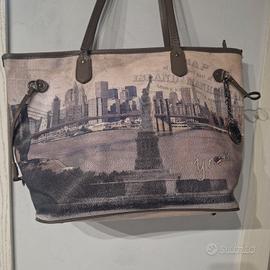 Splendida e iconica borsa a spalla/shopping bag originaleY Not?, modello"Marilyn - New York". Fa parte della celebre collezione "Yes Bag", famosa per le sue stampe fotografiche di città.
