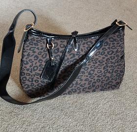 vendo borsa maculata marrone e nero con laccio regolabile e quindi adatta anche per tracolla. Tasca con cerniera sul retro e varie tasche e scomparti all'interno. Come nuova