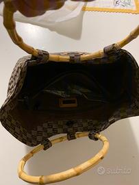 Borsa Sisley con manici in bambù doppia capiente tasca interna, chiusura a clip. Come nuova, mai usata. Completa di sacchetto originale. Scambio a mano zona acqui terme, Asti, Canelli, oppure spedizione con spese a carico dell'acquirente.