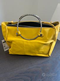 Design elegante con manici metallici tondi e tracolla inclusa β pratica da portare a mano o a spalla.