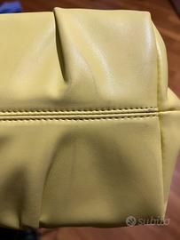 Borsa Sodini Bijoux colore giallo lime mai utilizzata con ancora il cartellino originale di vendita. Presenta tracolla e manici in vera pelle con clip color Oro. Presente anche la confezione in tela per riporla in caso di inutilizzo. Come si vede dall'ultima foto, è presente un alone tendente al grigio sulla parte inferiore della borsa dovuto alla produzione, in quanto acquistata con tale difetto di fabbrica.