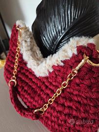 Borsa. Fatta mano. Con fettuccia color vinaccia, effetto velluto.