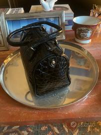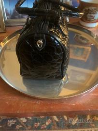 Borsa in vero coccodrillo. Bauletto forma “speedy”. Coccodrillo nero centrato. Misure: 22 cm lungezza - 15 cm altezza - manici a parte - 12 cm larghezza. Manici in coccodrillo nero cm 12. Interno in pelle nera con tasca chiusa da cerniera. La borsa è stata prodotta negli anni ‘90 da una famosa maison di Parma non più esistente.