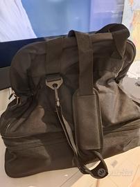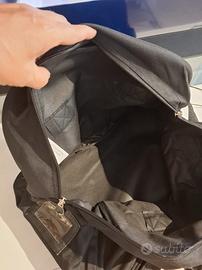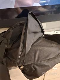 Borsa sportiva Asics di medie dimensioni colore nero con portascarpe sotto, completa di tracolla