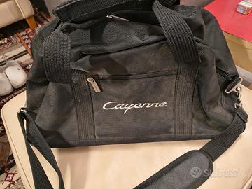 borsa sportiva Porsche Cayenne nera originale con tracolla mai usata dimensioni lunghezza 50 larghezza 25 altezza 25