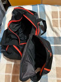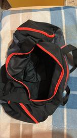 Borsa sportiva Puma nera e rossa, unisex, mai usata e in ottime condizioni. Spaziosa e resistente, ideale per la palestra o viaggi brevi. Presenta una tasca laterale con zip e un ampio scomparto principale. Insieme c'è anche il suo beauty.