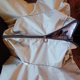 Nuova, mai usata. Marca Decathlon. Adatta per palestra o piccolo bagaglio a mano. Color azzurro chiaro. I manici rotondi si chiudono con un automatico