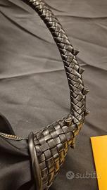 Intramontabile Fendi Spy mai indossata. Anni 2000. Nappa e rasatello. Manico singolo intrecciato. Piccola tasca interna. Fodera interna con logo stampato. Piccola tasca esterna. Chiusura principale con cerniera logata.