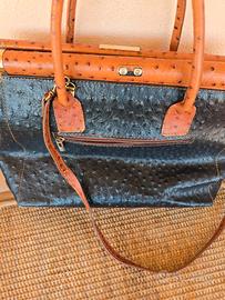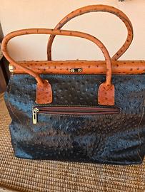 Borsa stampa a struzzo doppi manici e tracolla