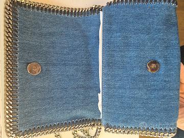 modello Falabella in denim, borsa tipo pochette, nuova con cartellino in scatola originale e garanzia. tracolla distintiva di Stella.