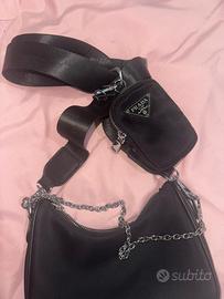 Borsa stile Prada nera con tracolla e pouch, come nuova, usata 2 volte.