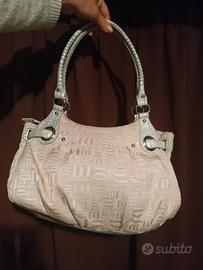 Borsa stoffa ecrù “David Jones” con inserti in similpelle. Cm. 39 x 18 x 7