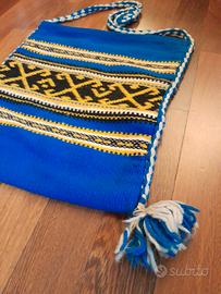 Borsa "Tagari" Greca Vintage anni '70 – Tessuto a Mano Blu Cobalto con Motivi Etnici