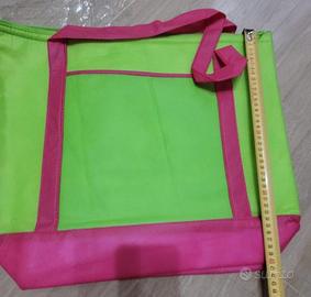 dal vivace design bicolore verde acido e fucsia, è una soluzione pratica per il trasporto di alimenti e bevande mantenendone la temperatura.Si presenta come una borsa shopper di grandi dimensioni, ideale per la spesa, il mare o i picnic.