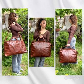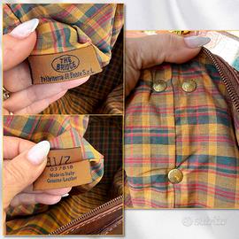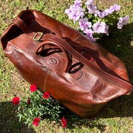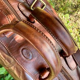 Borsa da viaggio weekend The Bridge Story viaggio in pelle marrone. Logo superiore, due maniglie e tracolla regolabile con fibbia. Base con cinque piedini di appoggio e protezione. Apertura superiore a zip. Interni in tela tartan scozzese con tasca grande a zip. Hardware gold inciso. Per chi non rinuncia alla classe e all’eleganza con una pelle morbida, bella al tatto, leggera e spaziosa per assicure un trasporto confortevole pur mantenendo compattezza e resistenza. Misure: L 50 X H 36 Profondità 28
