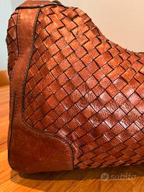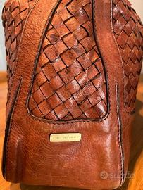 Borsa a spalla da donna, in cuoio naturale intrecciato. Marca The Bridge, usata pochissimo. Larghezza cm 37, altezza cm. 30, profondità cm 12