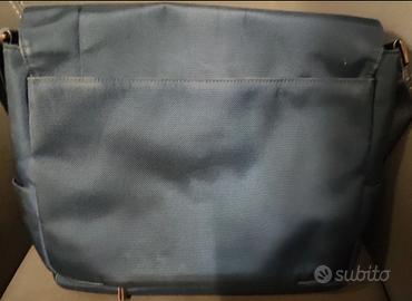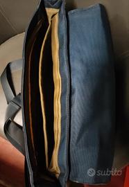 Borsa con tracolla The Bridge Wayfarer mod. Messanger, colore blu in tessuto con dettagli in pelle, composta da vari scomparti e vano porta computer; dimensioni cm. 37x32. Usato poche volte in buone condizioni