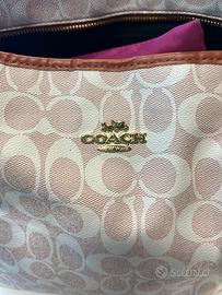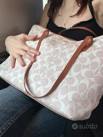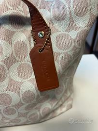 • Borsa modello Coach rosa e bianca con dettagli marroni/arancioni • Molto spaziosa • Targhetta modello Coach • Tasca laterale Spedizione veloce!