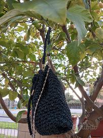 borsa realizzata all' uncinetto in cordino glitter con doppia tracolla