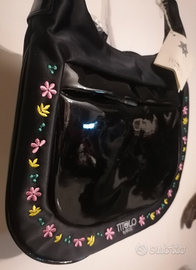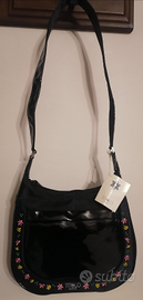 Borsa "Titolo by Basile". Lucida Nera,Bordo con Fiorellini.Tracolla. Nuova cn cartellino.Altezza cm24.Larghezza cm28, Tracolla cm75.