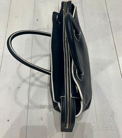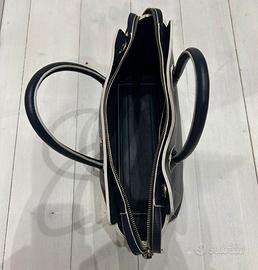 Elegante borsa tote Tommy Hilfiger originale in un sofisticato color blu notte. Molto capiente. Misure 35x20 cm. Mai usata e senza difetti. Presenta dettagli bianchi a contrasto e un logo distintivo sul davanti.