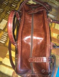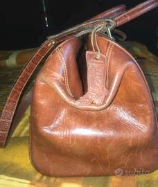 Borsa vintage in cuoio è un modello del marchio italiano EI Campero. È un pezzo artigianale caratteristico dello stile anni '80, realizzato in vera pelle. Design a bauletto con manici rigidi, tracolla regolabile e logo metallico dorato