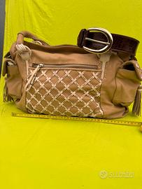 Borsa Tosca Blu in pelle beige e bianca con rombi a rilievo