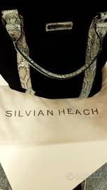 Tote bag nera con manici e strisce decorative con motivo pitonato,