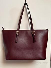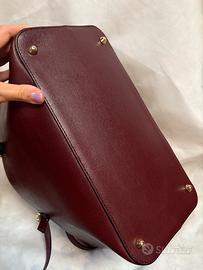Vendesi splendida borsa modello Tote in vera pelle color bordeaux (tonalità vinaccia), caratterizzata dalla prestigiosa lavorazione Saffiano che la rende estremamente resistente ai graffi e alla pioggia.