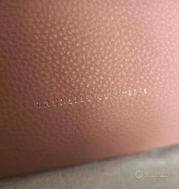 Borsa NUOVA in vera pelle, marchio Brunello Cucinelli, color malva con inserto glitter nero. Modello Tote Shopper capiente e comoda