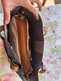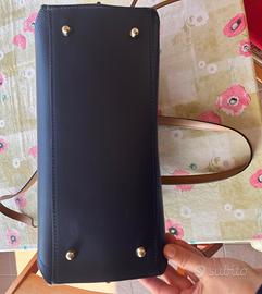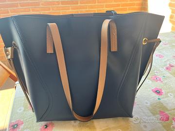 Borsa modello Tote in pelle, originale Cuoieria Fiorentina. Di colore blu con manici e regolazioni marroncine. Molto elegante. Con sacca interna in tessuto e cerniera.