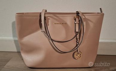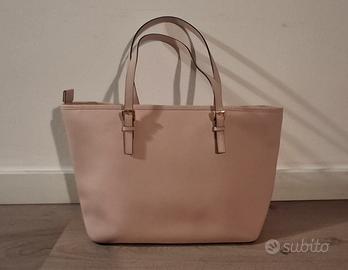 Eleva il tuo stile quotidiano con l'iconica borsa tote Jet Set. Realizzata in pregiata pelle color rosa cipria, questa borsa combina perfettamente funzionalità e ricercatezza.