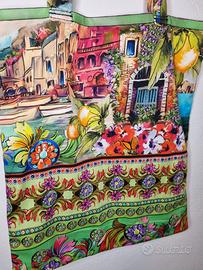- Motivo mediterraneo con colori vivaci e dettagli floreali.