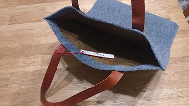 Borsa Tote Bag vintage MAX&Co. in feltro grigio con manici in vera pelle, design italiano anni 2000.