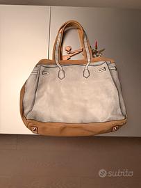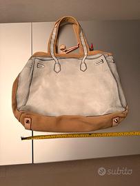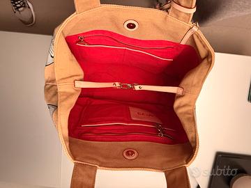 Vendo splendida e capiente borsa tote firmata V°73, celebre per la sua iconica stampa trompe-l'œil che ricrea l'illusione ottica di una lussuosa borsa in pelle martellata (stile Birkin). Perfetta per l'uso quotidiano, per il lavoro, l'università o come borsa da viaggio grazie alle sue dimensioni generose. Dettagli della borsa: Materiale: Tela canvas ultraresistente (color sabbia/beige) con stampa frontale e posteriore sui toni del bianco/grigio chiaro. Interno: Fodera in tessuto rosso a contrasto, dotata di due ampie tasche con chiusura a zip per gli oggetti di valore. Chiusura e Forma: Chiusura centrale con bottone magnetico. All'interno è presente un laccetto con moschettone per stringere i lati e modificare la forma della borsa (da tote squadrata a forma più a trapezio). Dettagli hardware: Dettagli in metallo dorato, inclusa la targhetta frontale "V°73", i piedini protettivi alla base e l'iconico portachiavi a charm con la "V", il "73" e il caratteristico cornetto portafortuna smaltato di rosso. Accessori inclusi: Viene venduta con la sua custodia antipioggia originale ("Raincoat / Housse de Pluie") marchiata V°73, comodissima per proteggerla in caso di maltempo. Dimensioni: Modello Maxi (larghezza alla base di circa 45-50 cm, come visibile in foto con metro). Condizioni: La borsa è in ottime condizioni generali, usata con cura. L'interno è pulito e i manici sono integri.