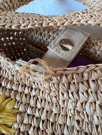 🌸 Borsa Tote MC2 Saint Barth Rafia Fiori - Ottime Condizioni ✨ ✨ Vendesi splendida borsa tote MC2 Saint Barth in rafia intrecciata color naturale, impreziosita da deliziosi ricami floreali colorati e dall'iconica scritta "Saint Barth". Un accessorio boho-chic indispensabile per la tua estate! 🏖️🍹 💖 Caratteristiche: • Brand: MC2 Saint Barth (originale, vedi etichette interne nelle foto 🏷️) • Modello: Borsa a mano / tracolla petit (circa 30cm di larghezza) 👜 • Materiale: Paglia/rafia sintetica intrecciata di alta qualità • Dettagli: Doppi manici corti + tracolla removibile coordinata 🔄 • Interno: Foderato, con taschino interno e chiusura a pressione 🔐 💎 Condizioni: La borsa è in ottime condizioni generali, usata pochissimo e tenuta con cura. L'intreccio è integro e i ricami sono perfetti. ⚠️ Piccolo difetto: Segnalo un piccolo difetto [descrivi brevemente il difetto, es: una piccola macchia interna / un filo leggermente tirato sul fondo, ecc.] visibile chiaramente nell'ultima foto. Il difetto è minimo e non compromette l'uso né l'estetica generale della borsa. 📦 Spedizione rapida e imballaggio accurato. ❓ Scrivimi per qualsiasi informazione o foto aggiuntiva! Non fartela scappare per il tuo prossimo weekend al mare! 😉