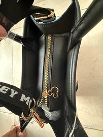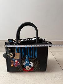 Borsa a mano ispirata al classico Disney Fantasia con Topolino Apprendista Stregone. Pratica, rigida e ricca di dettagli! Marca: Primark (Collezione Disney ufficiale) Condizioni: Nuova con cartellino (mai usata) Ricamo frontale di alta qualità, scritte in rilievo e stampa laterale a tema (cappelli magici e scope). Caratteristiche: • Doppio manico per portarla a mano. • Tracolla rimovibile in tessuto logato "Mickey Mouse" • Chiusura principale con zip e tiralampo dorato a forma di Topolino. • Charm esterno coordinato incluso. Dimensioni: • Larghezza: circa 28 cm • Altezza (senza manici): circa 22 cm - (con manici) circa 34 cm. Consegna a mano in un punto di incontro