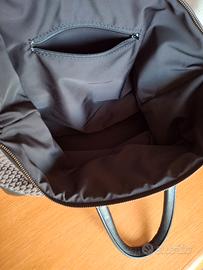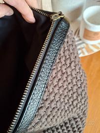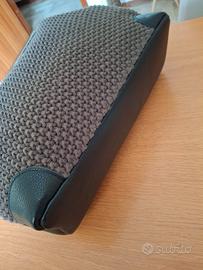 Borsa con rifiniture e manici in vera pelle. Frontali lavorati in materiale acrilico. Comoda anche per studentesse Larghezza 50 cm Altezza 37 cm