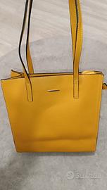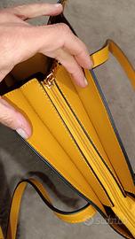 borsa tote colore giallo senape sin similpelle semirigida con chiusura zip e taschino interno mai utilizzata