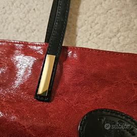 Borsa colore borgogna, manici neri, dettagli dorati. Misura 38x41cm. Perfette condizioni, con sacchetto per la polvere.