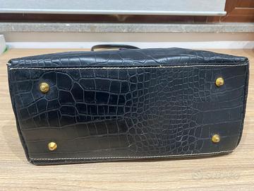 Dalla mia "Soffitta delle Meraviglie", propongo un pezzo di grande carattere: una tote bag in vera pelle nera con raffinata stampa coccodrillo e iconica fibbia a "H" dorata.