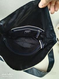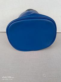 Particolare, capiente, multitasche, giovanile borsa tracolla marca Carpisa modello a secchiello con un design a cilindro con chiusura superiore a clip calamitata in eccellenti condizioni. Materiale: ecopelle. Colore: nero e blu. Tracolla regolabile. Tasche interne con chiusura con zip. Ottime condizioni.