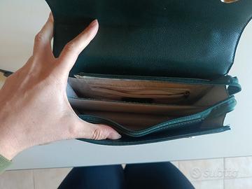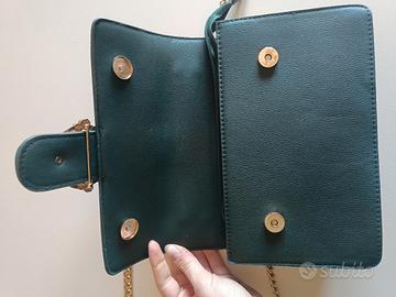 Borsa tracolla o a spalla verde pino con finiture ore in ottime condizioni.