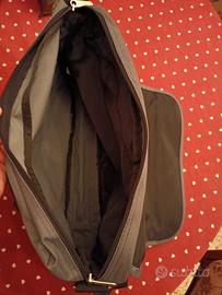 Portadocumenti, PC, Laptop, Notebook, in tessuto impermeabile robusto e di ottima qualità, col. GRIGIO, moschettoni su cinghia tracolla, anelli e cursori zip di metallo. Dimensioni cm: 36 x 29, profondità variabile cm 6/7,5 con zip perimetrale aperta.