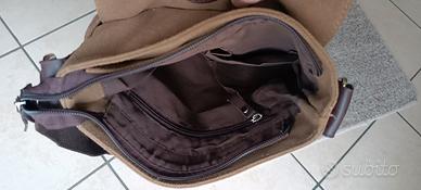 borsa a tracolla in tessuto con particolari in pelle Attack on Titan. Nuova con cartellino.