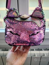 Borsa a tracolla da bambina in paillettes reversibili a forma di unicorno. Condizioni ottime € 8